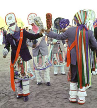 to couple, left dancer to right. Each couple breaks the guaje-arch